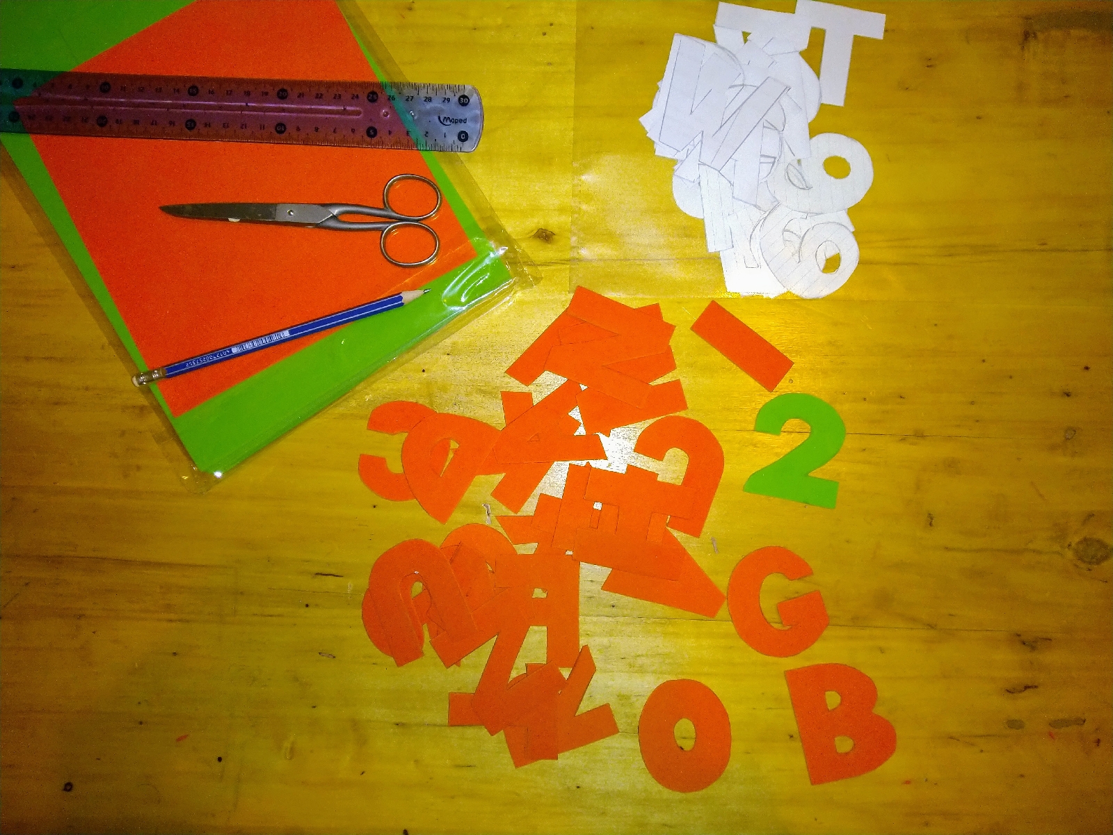 Mi è venuta in soccorso la gomma crepla! Spesso utilizzata per lavoretti vari, può essere utile per ritagliare lettere, numeri e forme!