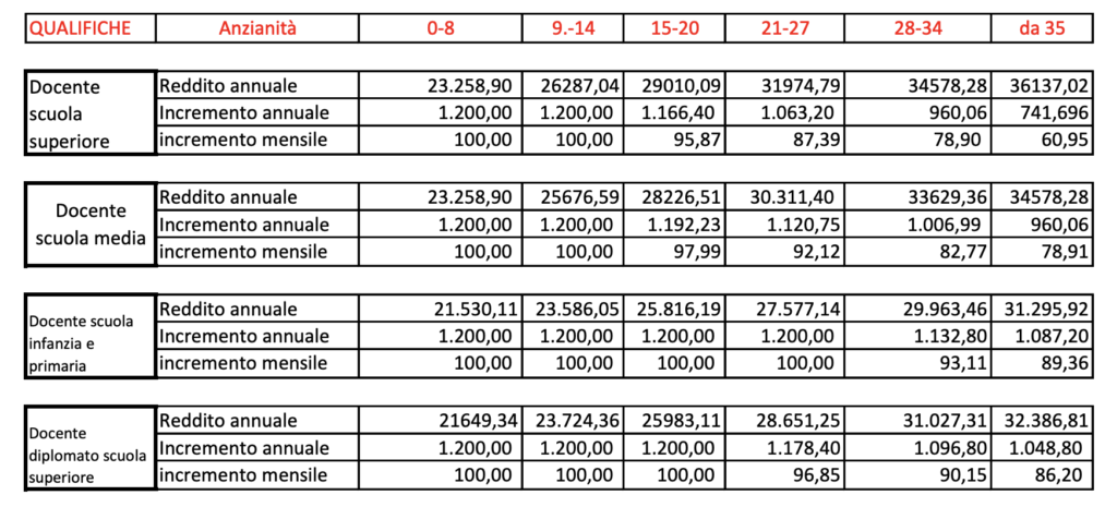 Progressione stipendiale 2022 dei docenti e degli ATA
