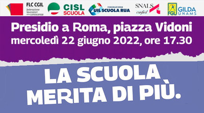 21.06.2022 15:41 Sindacati di nuovo in piazza domani, 22 giugno, per ribadire le ragioni della scuola rimaste finora inascoltate. L’appuntamento è per le 17.30 a…