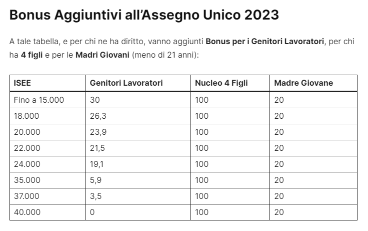 Per i nuovi importi dell’assegno e le relative soglie ISEE aggiornate sulla base del comunicato ISTAT del 17 gennaio 2023, si rinvia all’Allegato n. 1 della circolare con le tabelle assegno unico 2023.Per approfondire: Circolare numero 41 del 07-04-2023