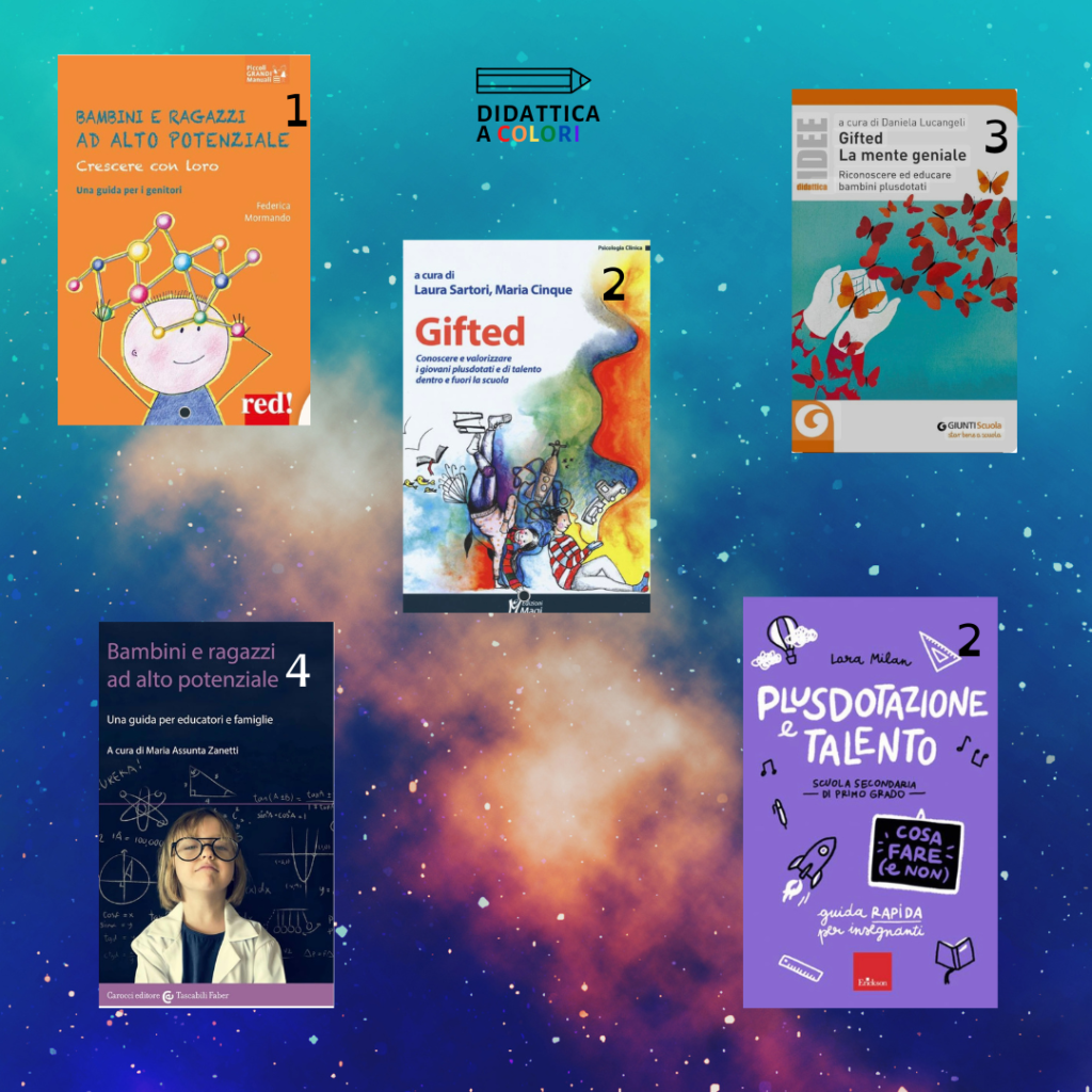 - Bambini e ragazzi ad alto potenziale a cura di Maria Assunta Zanetti il libro ha un taglio divulgativo e parte anch’esso da un approccio teorico per considerare la giftedness a 360°. L’aspetto interessante è la considerazione della plusdotazione come una risorsa per tutti, non solo per i gifted.