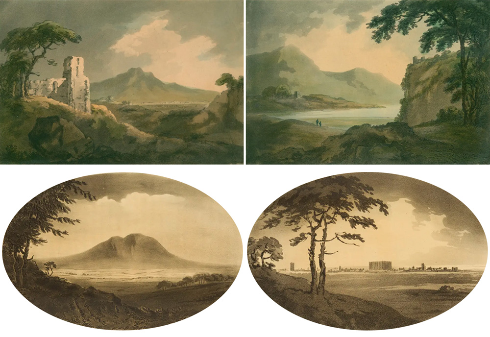 Le incisioni derivate dai suoi schizzi sembrano proprio paesaggi visti con lo specchio Claude. Alcuni ne conservano persino la forma ovale!
