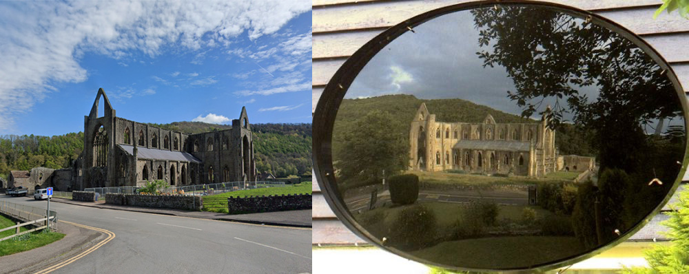 Un altro specchio, di forma ovale, è stato installato presso Tintern Abbey, un’antica abbazia cistercense in rovina nel Galles sud orientale.