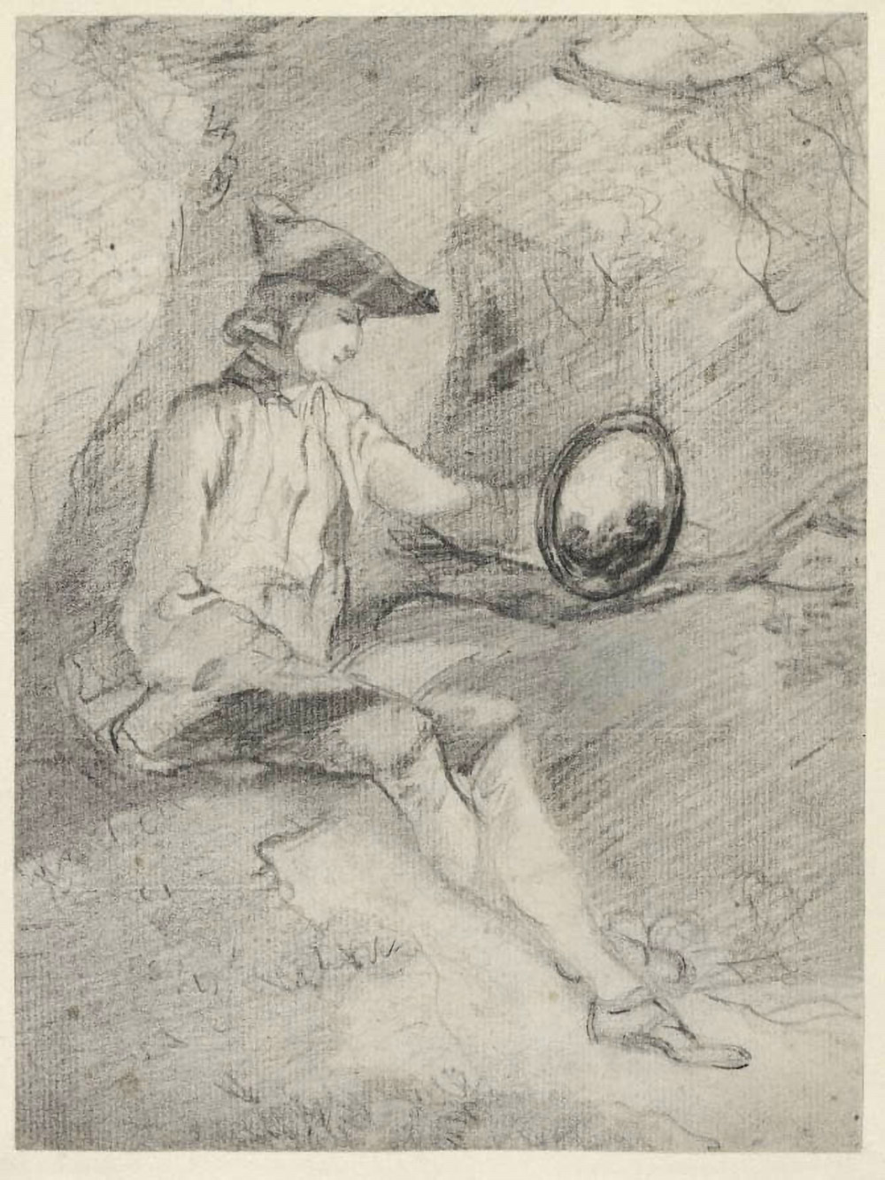 Thomas Gaisborough, Studio di uomo che tiene uno specchio Claude, 1750-1755