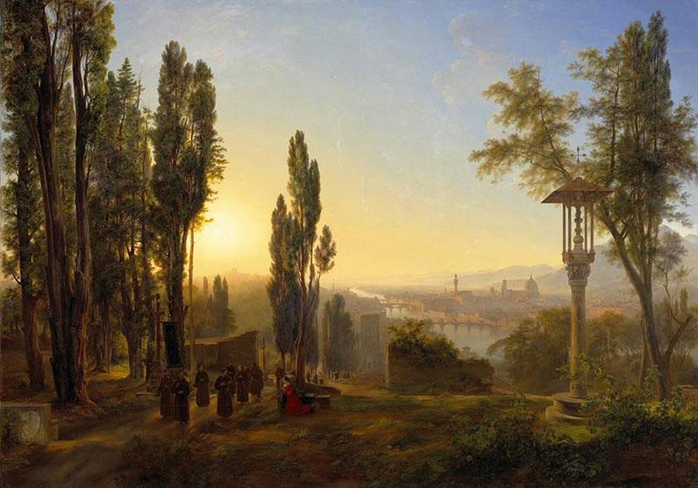 Alla seconda permanenza in Italia, durata ben 24 anni, appartengono opere come la vista di Roma da Monte Mario, un tipico paesaggio classico con il cupolone sullo sfondo e una donna in primo piano seduta presso un’erma femminile e un sarcofago romano.