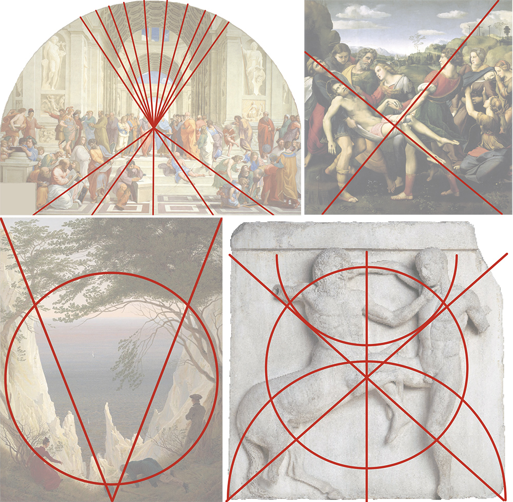 Questo tipo di analisi geometrica, realizzata sovrapponendo al dipinto griglie, triangoli, cerchi e diagonali, non esplicitamente documentati dagli artisti, è una pratica recente, nata tra la fine dell’Ottocento e l’inizio del Novecento, quando la storia dell’arte si è affermata come disciplina autonoma e si è sviluppato un interesse per la struttura formale delle opere, oltre che per i contenuti iconografici o storici. È un mezzo, dunque, che mira a comprendere l’intenzionalità progettuale nella ricerca di un’armonia visiva.