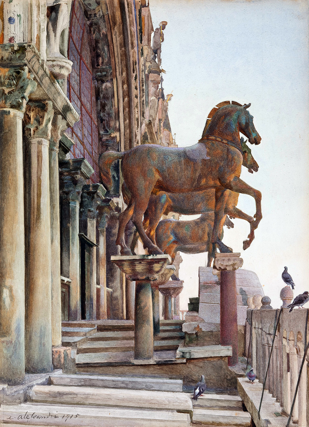 Angelo Alessandri, I cavalli di San Marco, 1915, acquerello