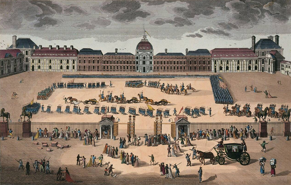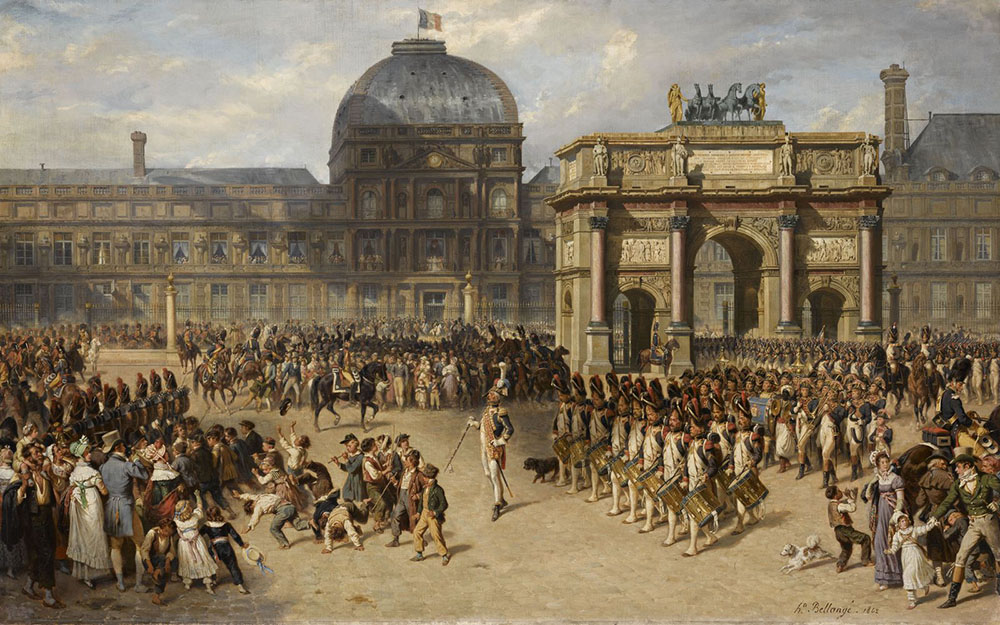 Quell’episodio venne così descritto dal corrispondente del London Courier: «Scopro solo adesso che gli austriaci stanno portando giù i cavalli di bronzo dall’Arco. Tutta la corte delle Tuileries e la Place du Carrousel sono pieni della fanteria austriaca e della cavalleria armata; a nessuno è permesso avvicinarsi; le truppe di guardia ammontano a diverse migliaia; ci sono folle di francesi in tutte le strade che conducono al posto che danno sfogo ai propri sentimenti con grida e imprecazioni… il numero dei cannoni dei ponti è aumentato».