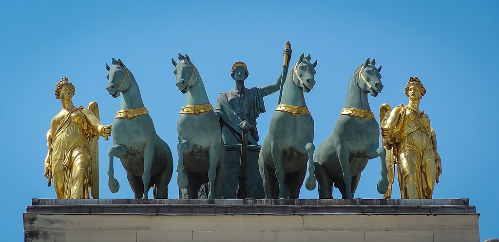 Nel 1808 furono innalzati sopra l’Arco di Trionfo del Carrousel, un monumento onorario uguale a quello romano di Settimio Severo, eretto apposta per celebrare le vittorie di Napoleone.