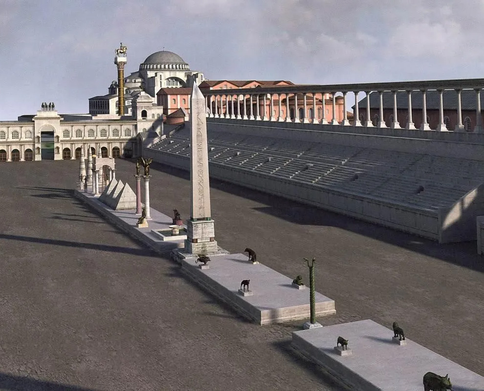 Non fu una scelta puramente decorativa ma fortemente simbolica. L’ippodromo di Costantinopoli, infatti, aveva lo stesso valore di un’agorà greca o un foro romano, cuore civile e politico dell’impero, tanto da essere collegato allo stesso Palazzo Imperiale: i cavalli rendevano tangibile il potere assoluto dell’imperatore, paragonato a un Sole che si irradia sulla terra. La forma stessa dell’ippodromo, che fin dalle sue origini era dedicato al dio Sole, ricalcava quella presunta dell’universo.