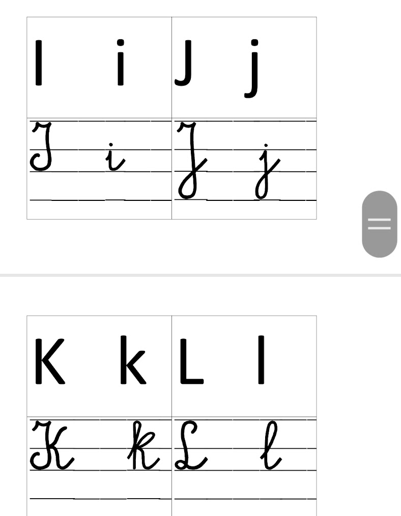 In terza elimino i disegni, ma lo appendo ancora per i bimbi che hanno qualche dubbio sulla scrittura del corsivo.