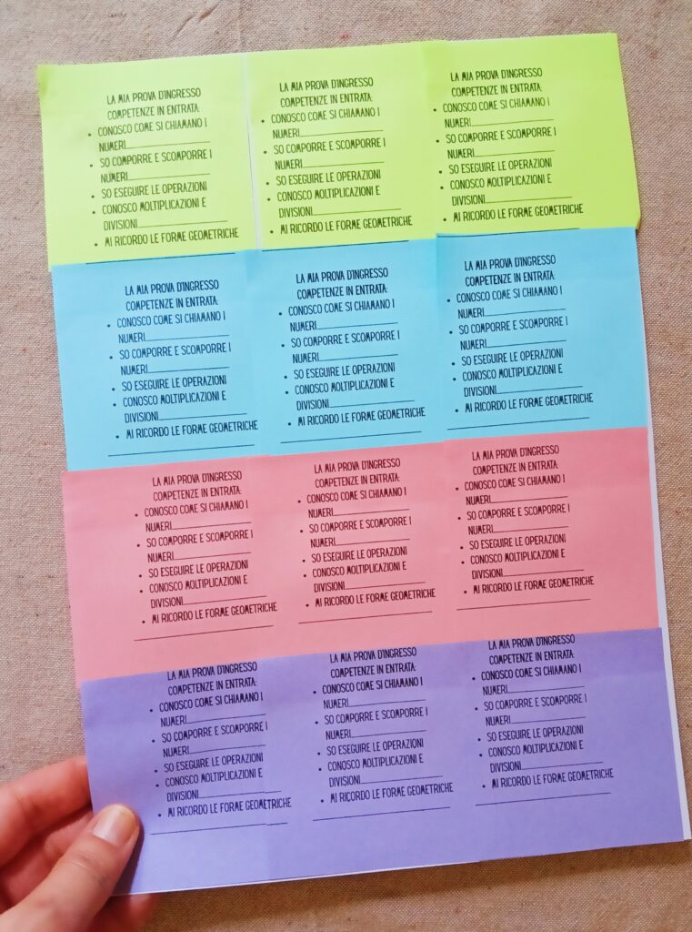 Ma non è finita qui. La mia restituzione ovviamente avverrà per competenze e lo farò attaccando post it con il mio feedback alle loro prove (eventualmente aggiungerò colla). Per praticità li ho stampati applicandoli a schieramento su un foglio A4, vi lascio anche quel file.