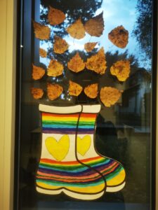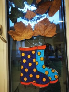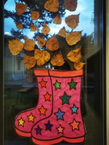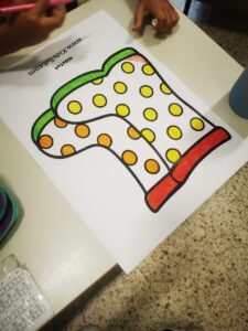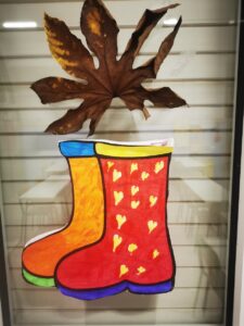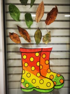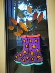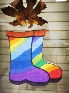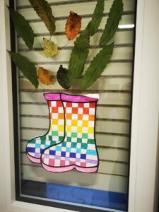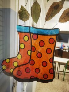 Gli stivali da pioggia invece li abbiamo colorati con i pennarelli.