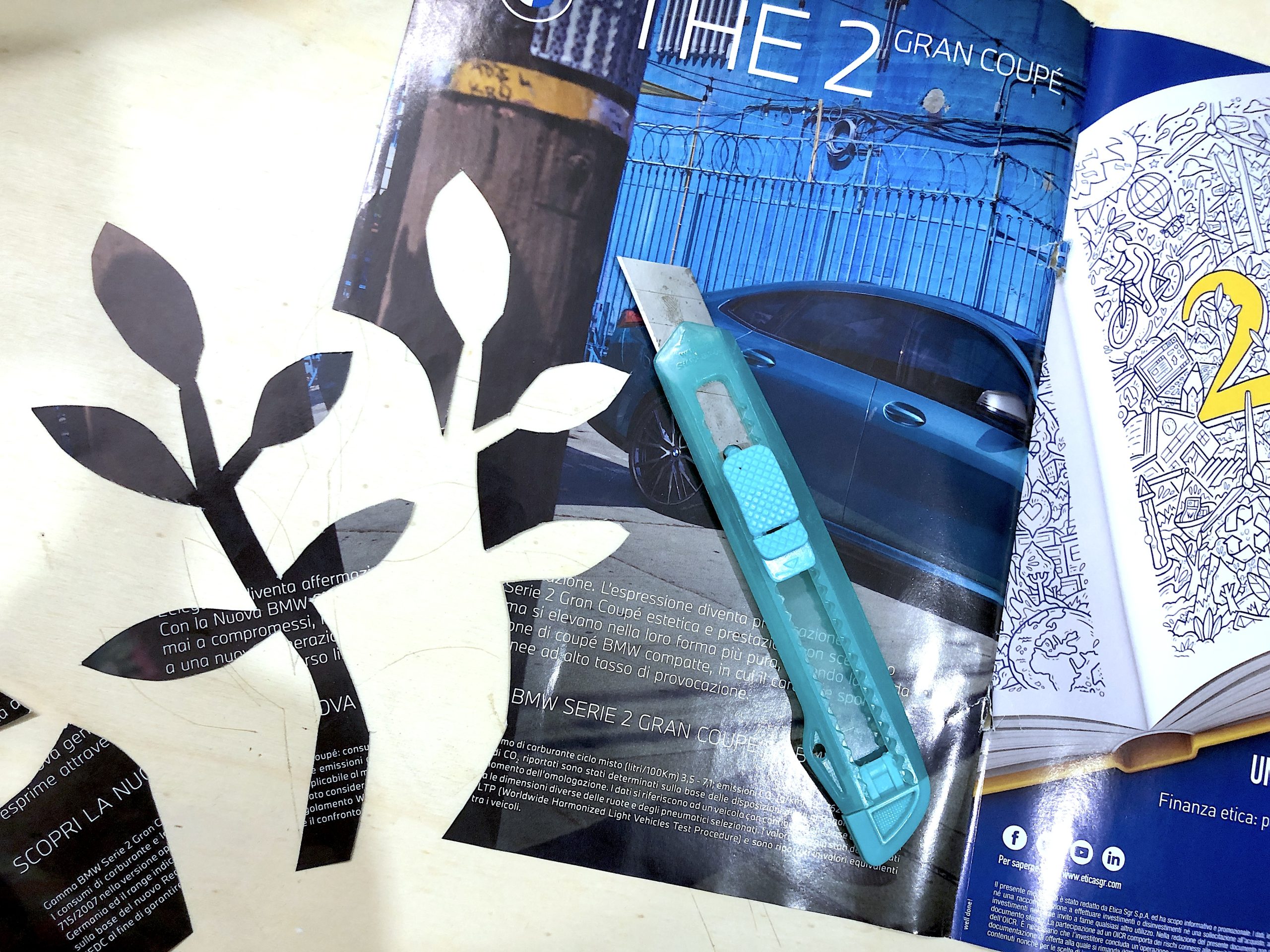 I bordi delle piccole lastre da assemblare vanno tagliati a 45° con un coltellino, questo faciliterà l’a’assemblaggio e costruzione degli spigoli. Bisogna fare attenzione perchè vanno tagliati SOLO I LATI che devono congiungersi, quindi non è necessario tagliare gli spioventi del tetto e i due quadrati che compongono il tetto stesso