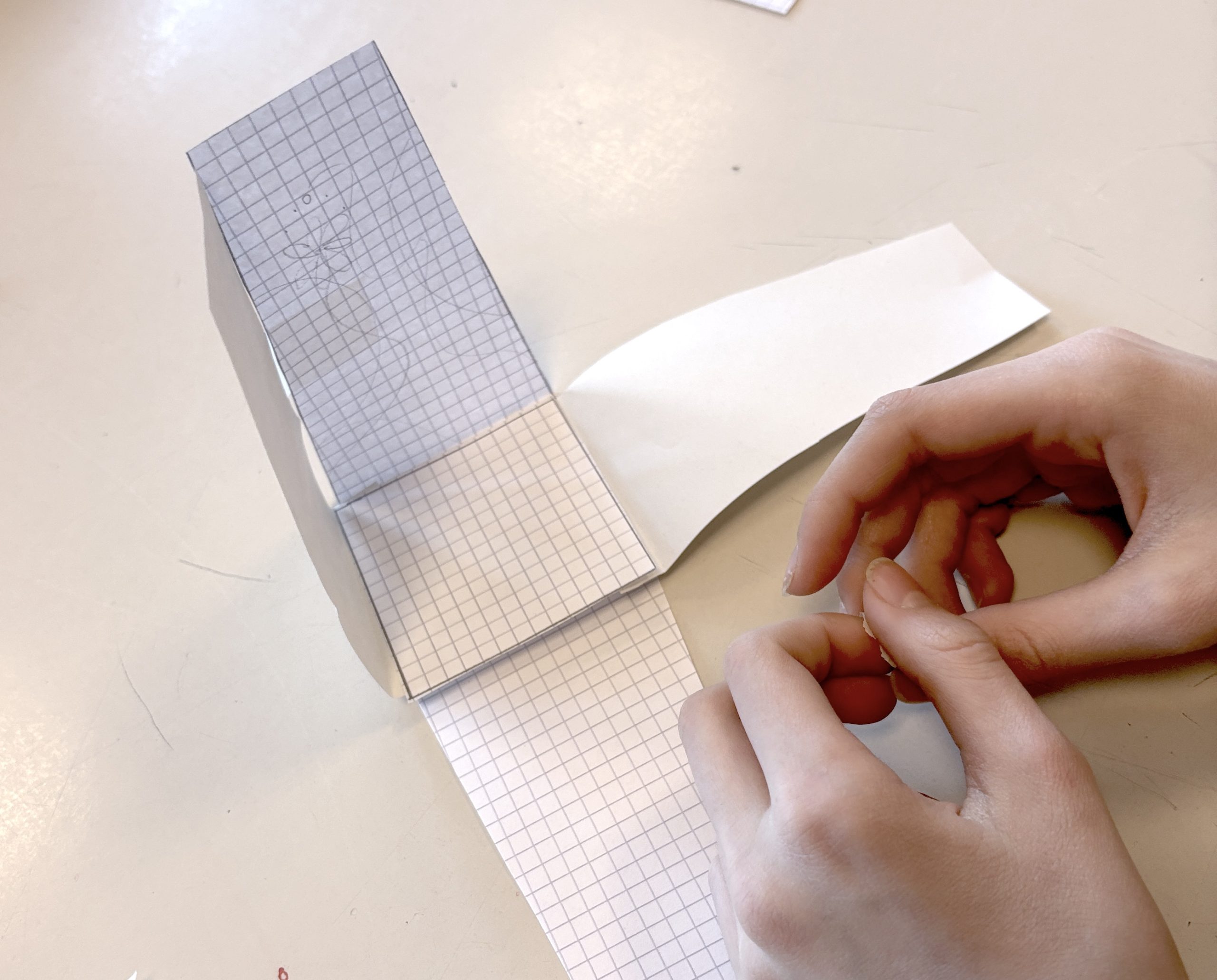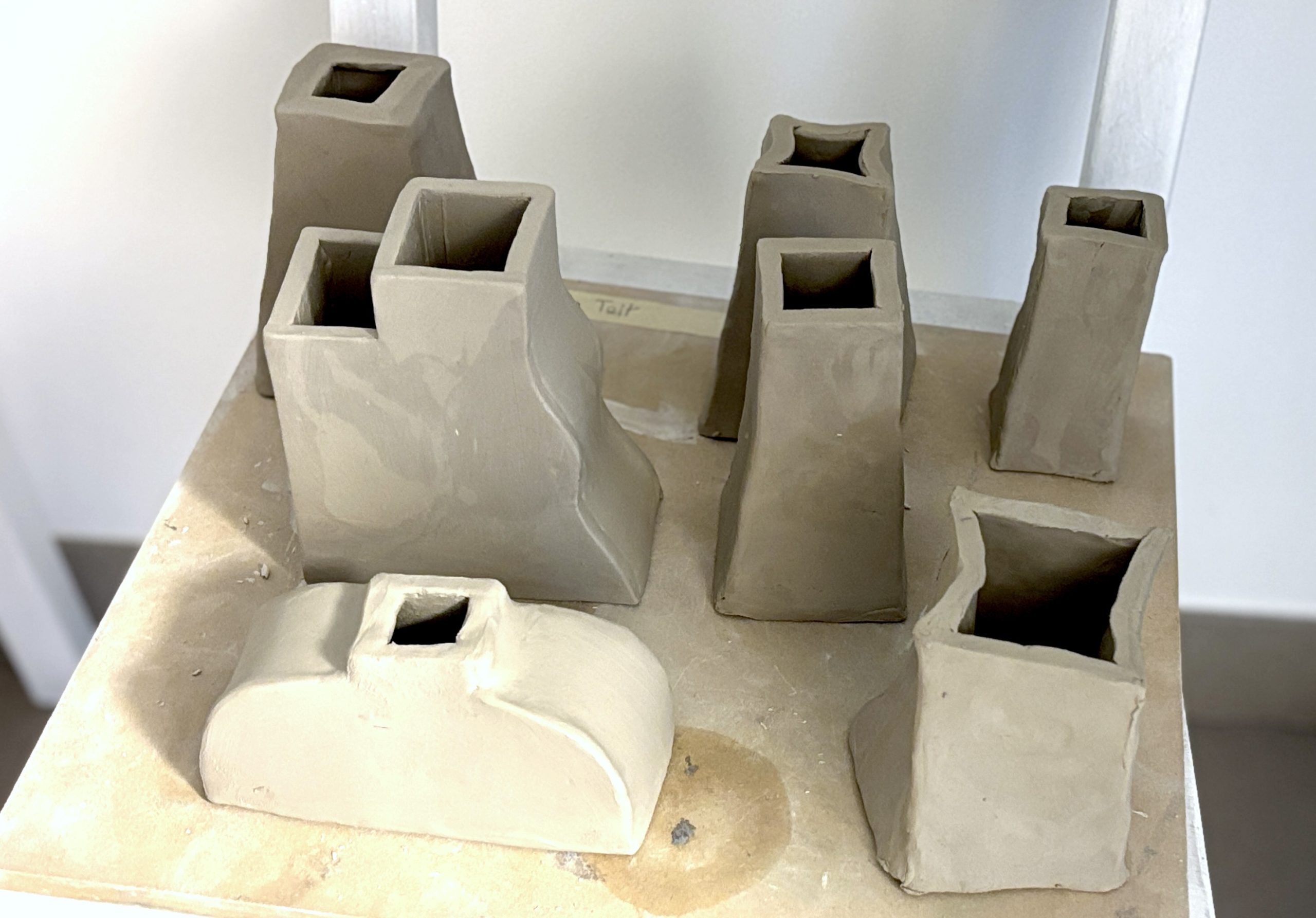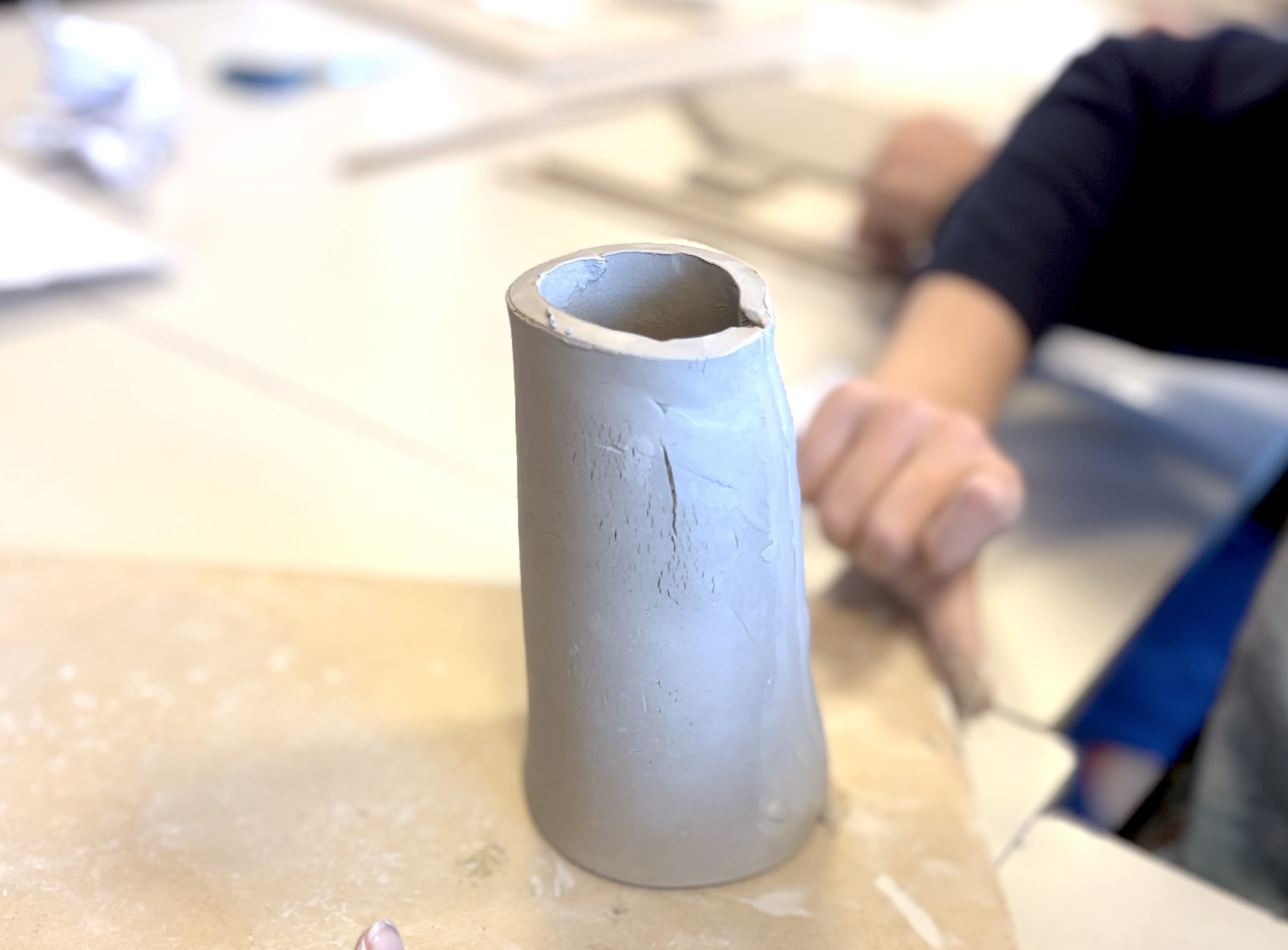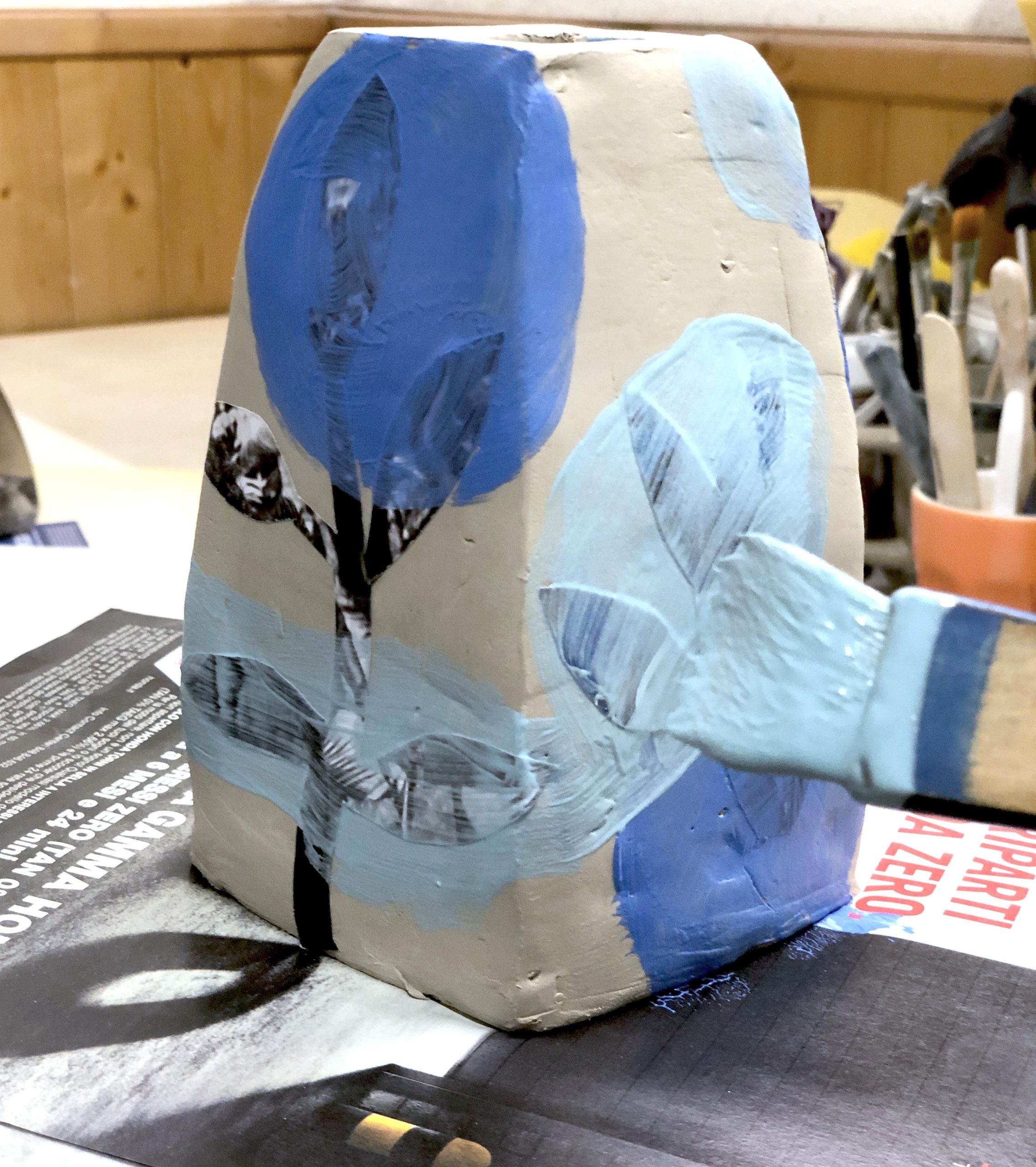Dopo aver pensato e ideato diverse forme, creando alcuni schizzi a matita, gli studenti hanno disegnato le sagome delle varie parti del loro vaso, cercando di capire come assemblarle. Per fare il progetto del loro vaso, gli studenti hanno ritagliato e assemblato i pezzi con lo scotch, costruendo un prototipo tridimensionale. Questo passaggio è stato molto utile per verificare se il progetto fosse effettivamente realizzabile in creta, oltre che per valutare forme, proporzioni e dimensioni.