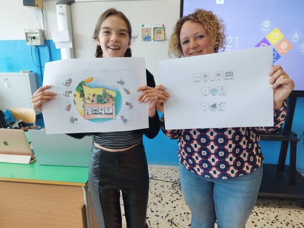 Per poter rendere questi messaggi accessibili a tutti, i ragazzi della classe 2D, con all’aiuto delle insegnanti, hanno pensato di tradurre alcuni passaggi del testo nei simboli CAA (Comunicazione Aumentativa Alternativa) e nella LIS (lingua italiana dei segni).