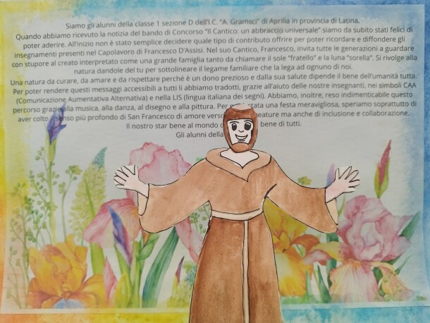 Gli alunni in occasione del bando di concorso “il Cantico: un abbraccio universale”, promosso dall’Ufficio scolastico regionale per il Lazio, hanno voluto ricordare uno dei testi più antichi della letteratura italiana, il primo di cui si conosca l’autore.