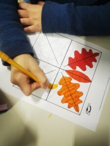 IL PUZZLE ALBERO DELLE STAGIONI con elementi (foglie, fiori, fiocchi, mele, fiocchi di neve)
