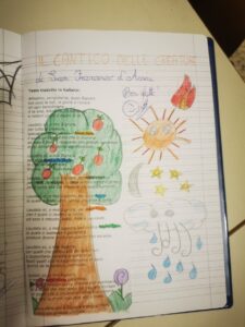 Attività sul quaderno. Lettura del cantico e produzione collettiva del cantico di classe.