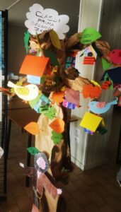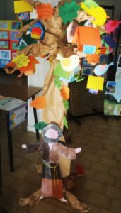 Su questo albero, i bimbi di classe prima, seconda e terza hanno appeso il frutto del loro lavoro.