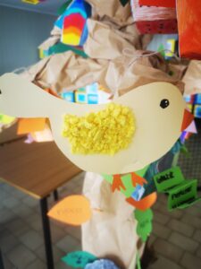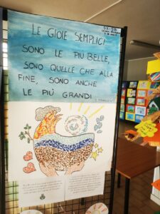 I bimbi di classe terza hanno appeso accoglienti casette di uccellini decorate con frasi di gratitudine, componendo così il primo nucleo del “nostro Cantico” di ringraziamento.