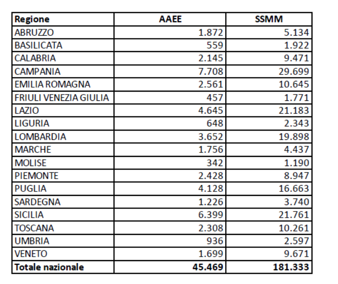 Dalla tabella pubblicata dal MIM emerge con chiarezza la concentrazione dei posti nel Mezzogiorno.