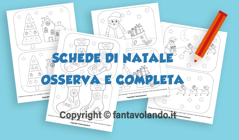 | Schede di Natale: taglia e incolla | Schede di Natale: disegni da completare | Schede di Natale: osserva e completa |