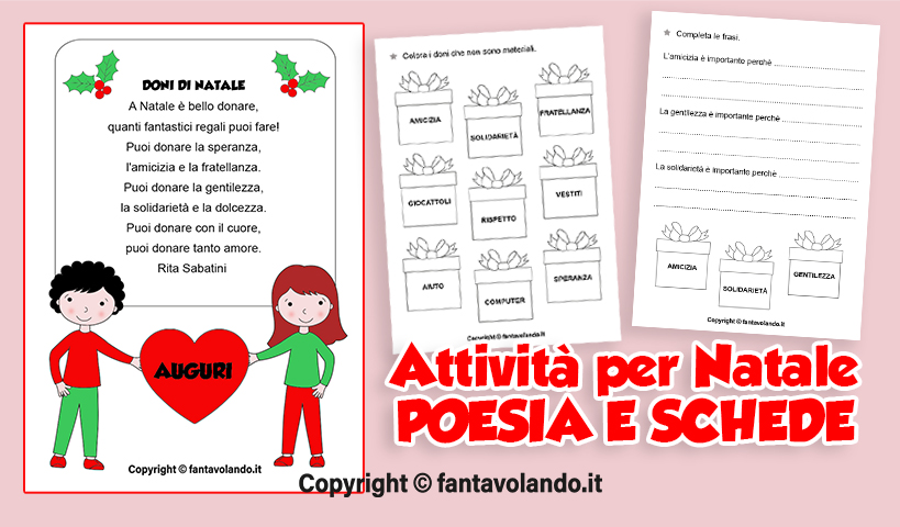 In questo post potete vedere l’indice di tutti i materiali disponibili nel sito per Natale suddivisi per tipologia. Nel sito di Fantavolando potete trovare tantissimi post per Natale: lavoretti, schede didattiche, decorazioni, festoni, biglietti di auguri, disegni, pregrafismo, coding, storie, poesie. Cliccando sulla scritta sotto ogni immagine si apre il link al relativo post. Nei post troverete tutte le indicazioni e i modelli da stampare per realizzare le attività.