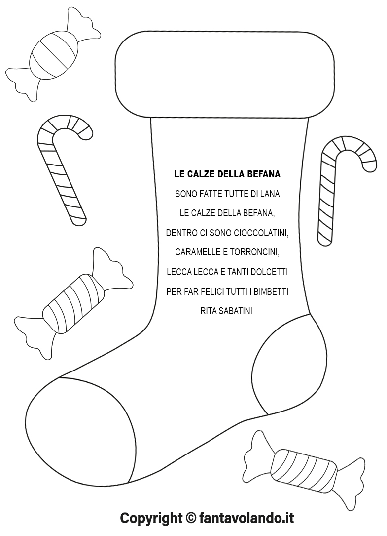 Procediamo seguendo la spiegazione video. La poesia è disponibile sia con il disegno da colorare che nella versione da ritagliare e incollare sul retro delle calze. |