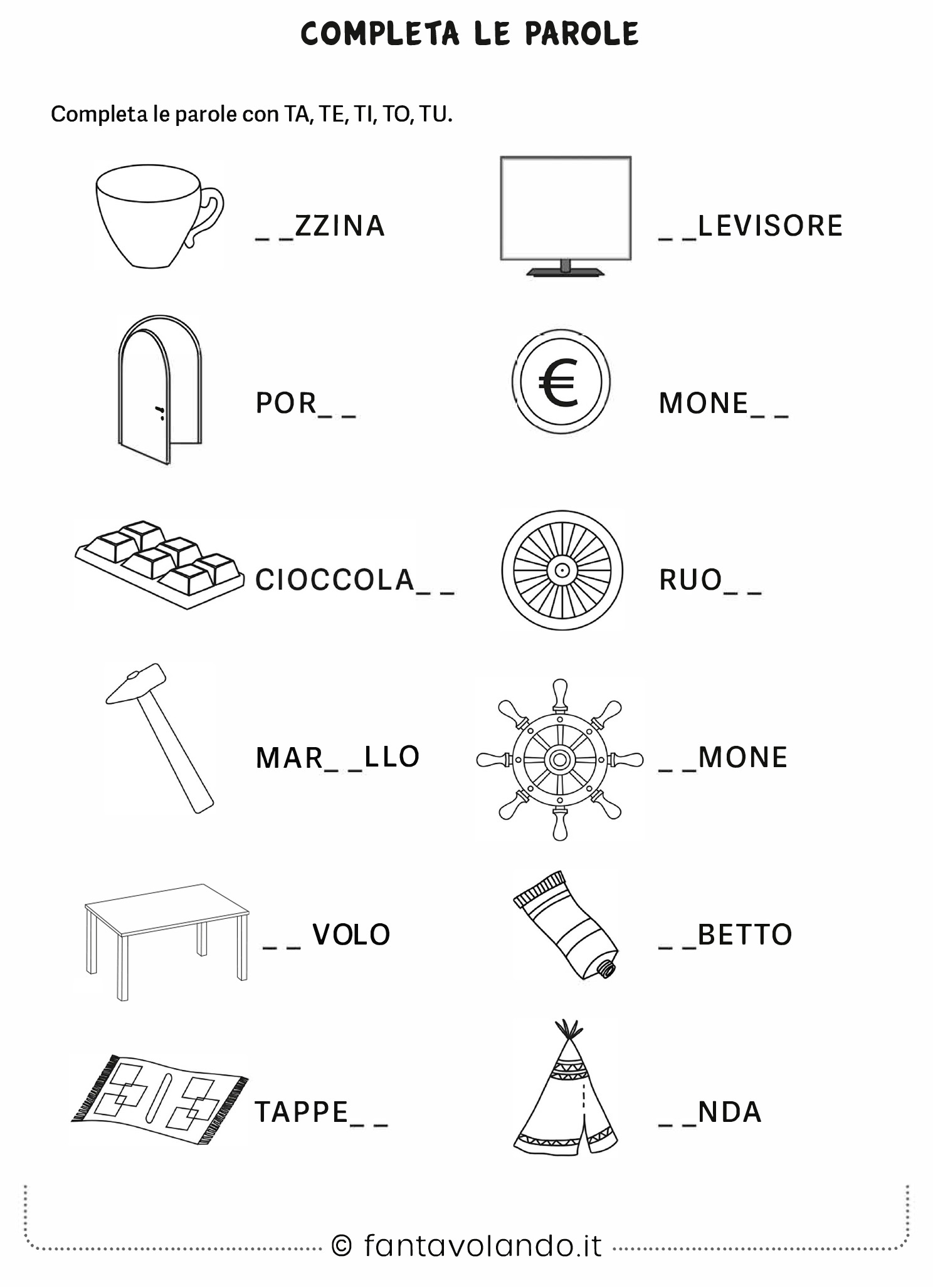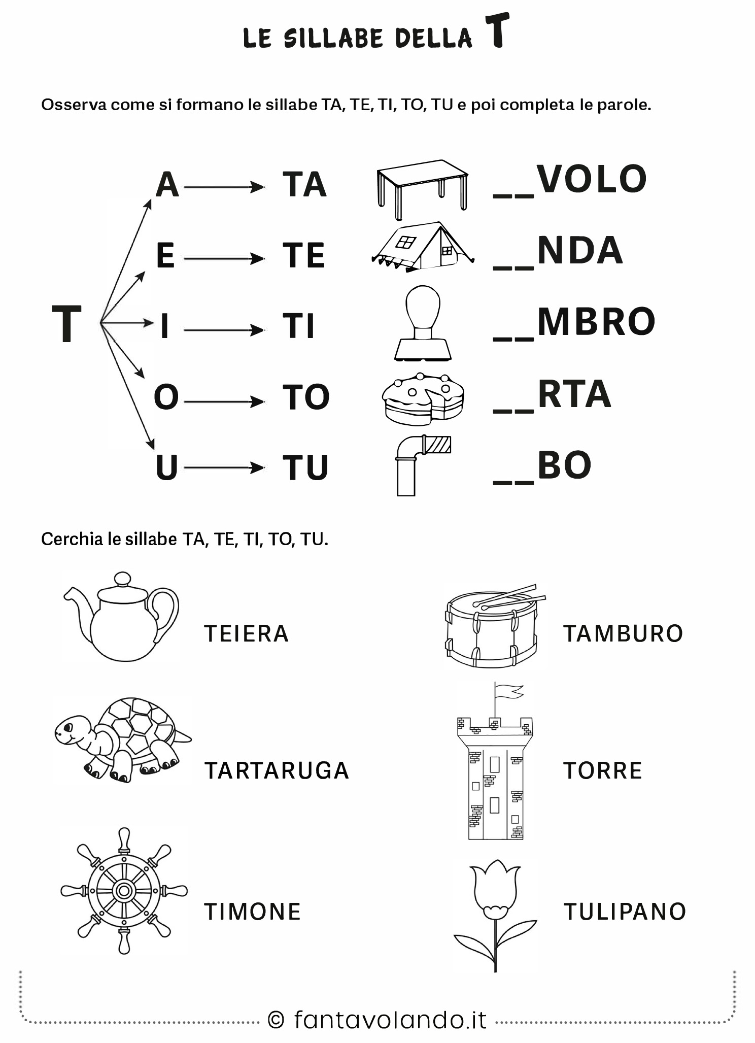 Per favorire la capacità dei bambini di riconoscere la lettera T e le sue sillabe possiamo proporre delle schede didattiche. Nel post c’è anche un video per introdurre le attività.