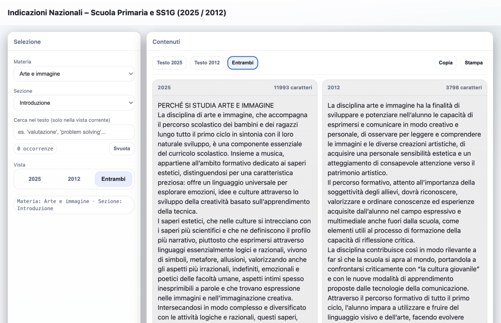 Su Missione Insegnante rendiamo disponibile una webapp per la consultazione rapida delle nuove Indicazioni Nazionali 2025 per il curricolo (e confronto con il 2012).