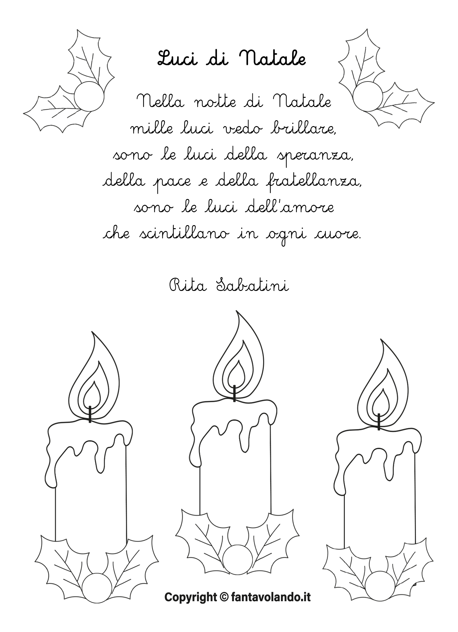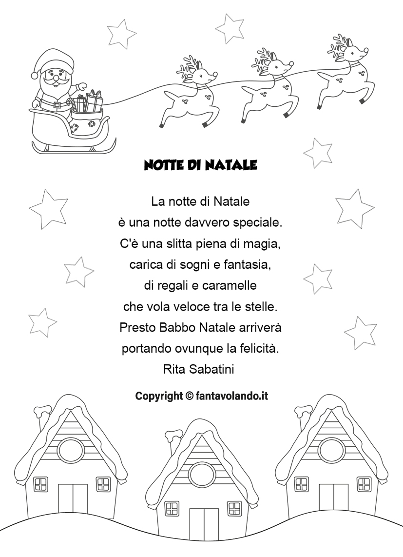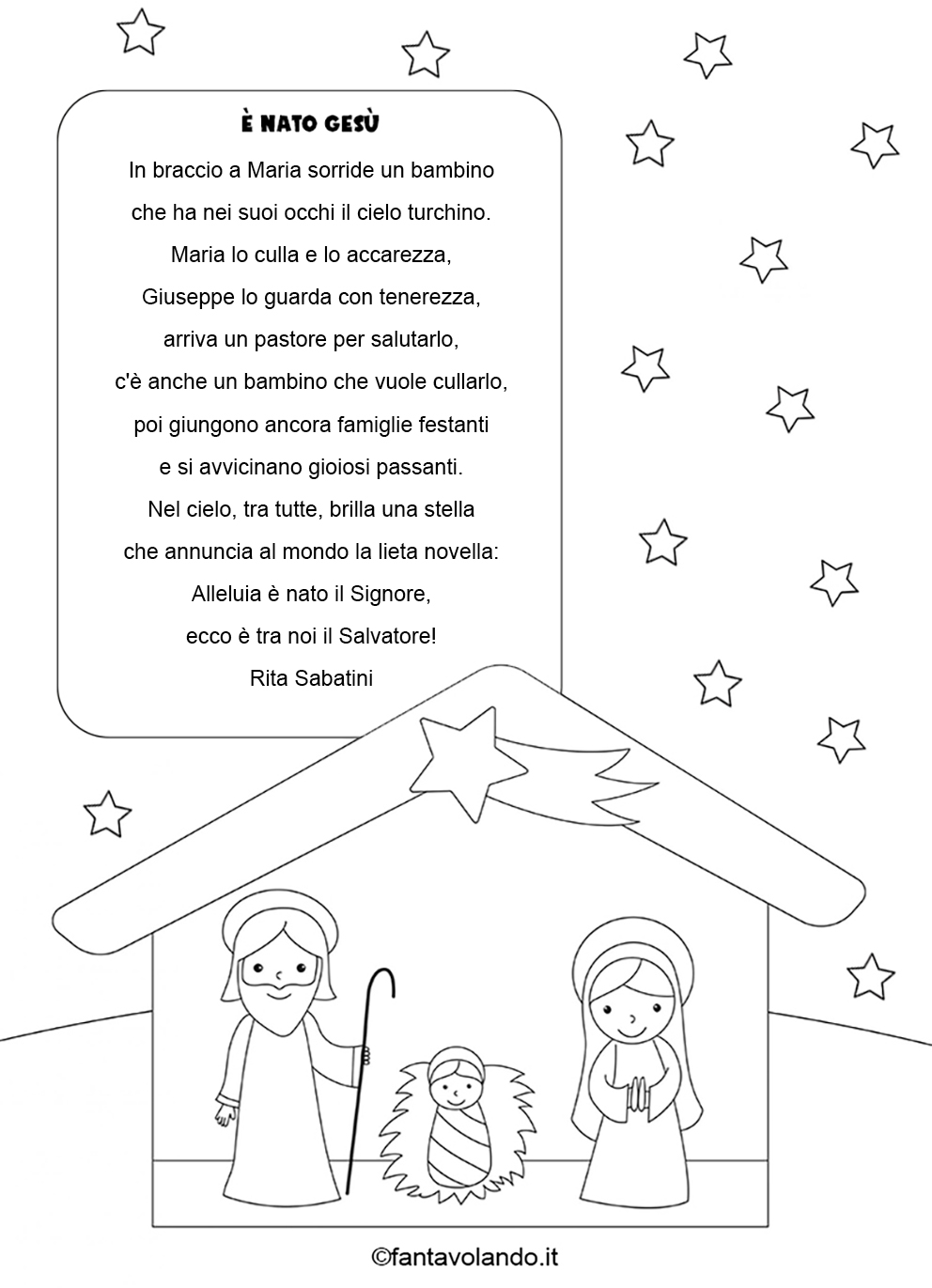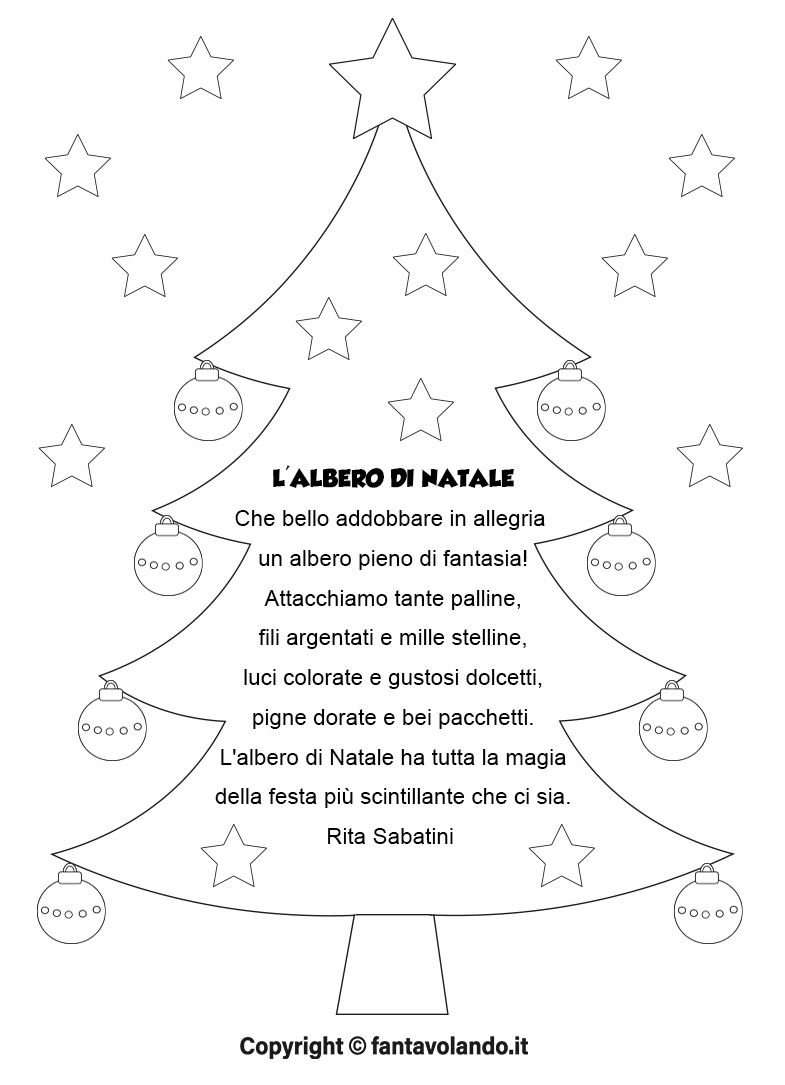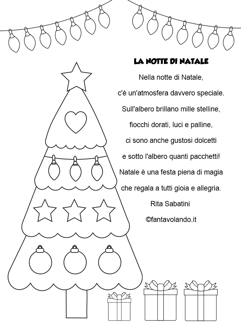 In questo post potete trovare le poesie di Rita Sabatini per Natale (tutti i diritti riservati). Proporre delle poesie è un’attività molto importante per arricchire il lessico e favorire la capacità di memorizzare. Le poesie di Fantavolando sono studiate in modo da facilitare la memorizzazione, per ogni poesia c’è anche un disegno da colorare.