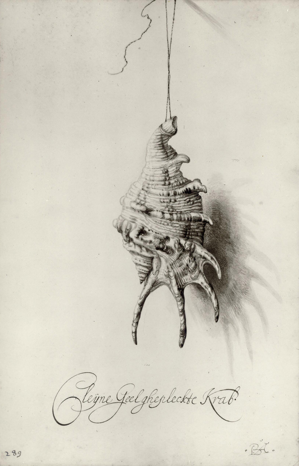 Un altro precedente che potrebbe aver influenzato l’opera è dell’olandese Bartholomeus Assteyn (1607-1677) che ha disegnato una conchiglia sospesa in verticale con un filo dall’incredibile effetto trompe l’oeil