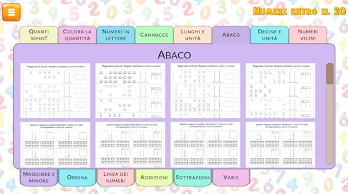 Inserita l’area per le schede dei numeri entro il 20 nella versione pubblicata di “Schedario di Aritmetica“.