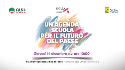“Un’Agenda Scuola per il futuro del Paese”. CISL Scuola, SNALS Confsal e GILDA Unams a confronto con Carlo Cottarelli il 14 dicembre
