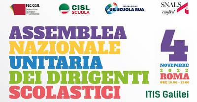 07.11.2022 10:41 Il 4 novembre è stata una bella giornata di partecipazione per i dirigenti scolastici. L’assemblea nazionale unitaria indetta da FLC CGIL, CISL SCUOLA,…