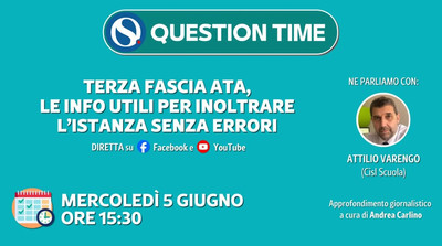 Tutto sulle domande per la terza fascia ATA al Question time di Orizzonte Scuola alle 15.30 del 5 giugno con Attilio Varengo