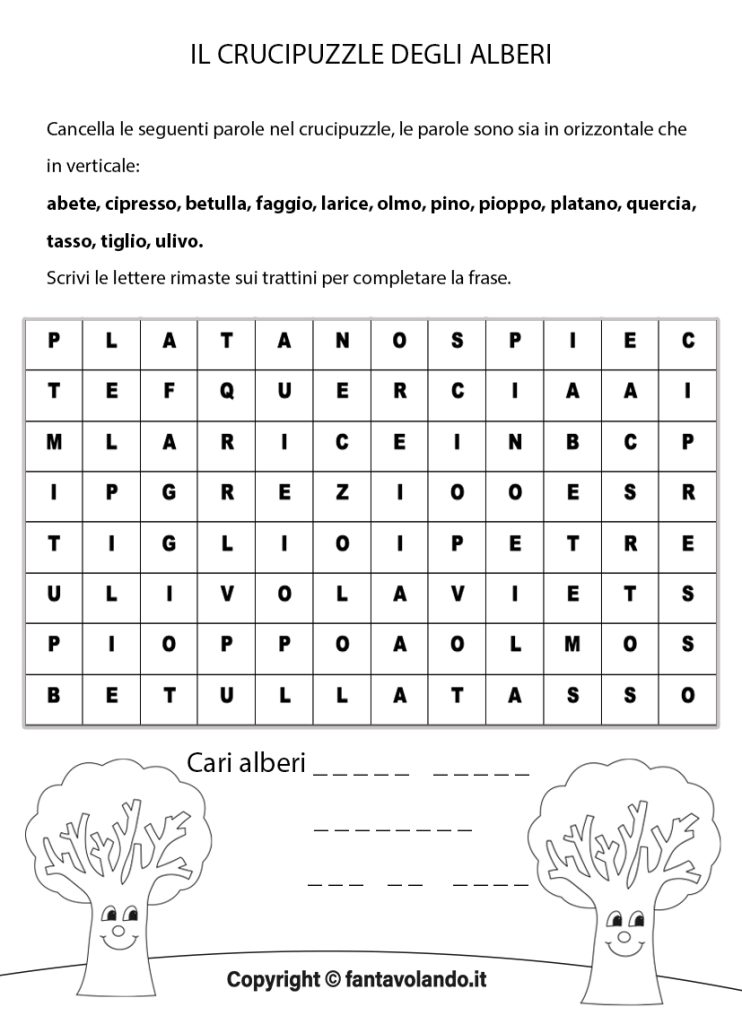 In occasione della Giornata Nazionale degli alberi (21 novembre) possiamo proporre un crucipuzzle e un cruciverba.