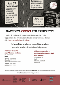 La Sezione AIB Friuli Venezia Giulia sostiene con il proprio patrocinio l’iniziativa “Codici per i ristretti”, promossa dall’Associazione Sisifo ODV, in collaborazione con l’Università degli…