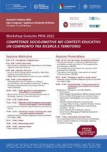 Nella Sala Congressi dell’Università della Sapienza di Roma, (via Salaria, 113) venerdì 3 ottobre, dalle ore 9 alle 18, si svolgerà un workshop gratuito dal titolo “Competenze socio…