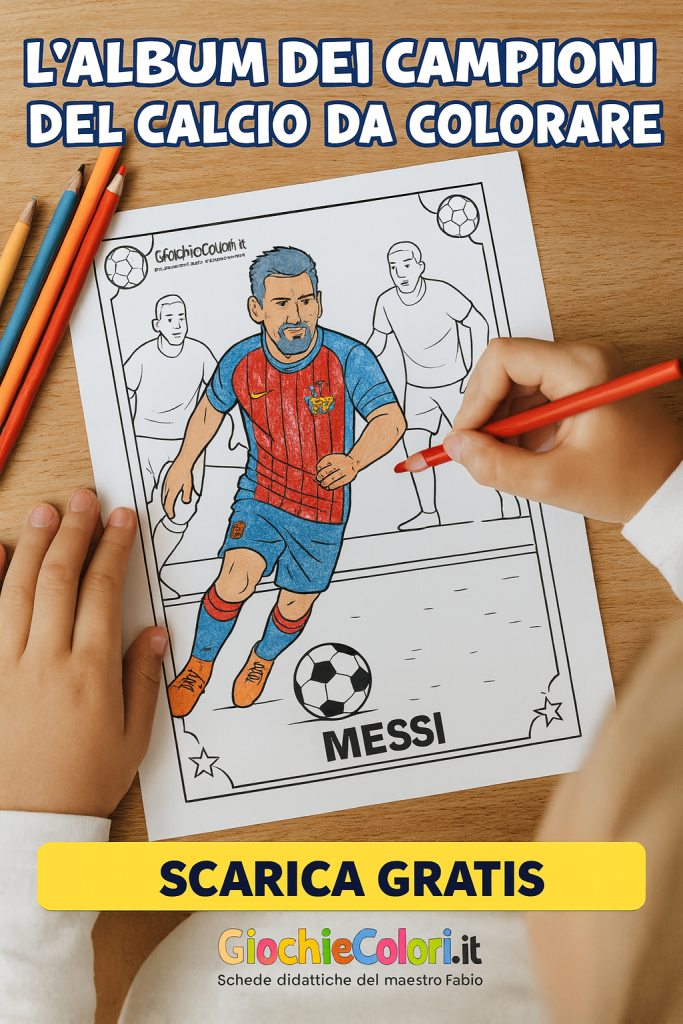 ⚽ Album Calciatori – 50 Pagine con i più grandi campioni da colorare, biografie e curiosità! Hai bambini appassionati di calcio? Questo album calciatori di…