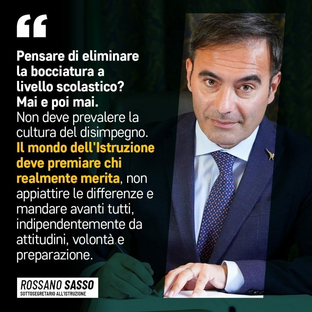 Sì alla bocciatura. Ai ragazzi servono anche i no. Ne è convinto il sottosegretario all’istruzione Rossano Sasso. Così su Facebook: “Non mi schiero al fianco…