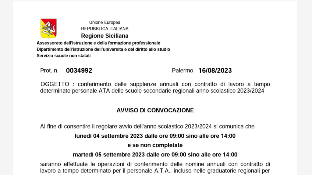 Al via le istanze per le supplenze annuali del personale Ata da impiegare nelle scuole secondarie regionali della Sicilia. Ci sarà tempo fino al pros…